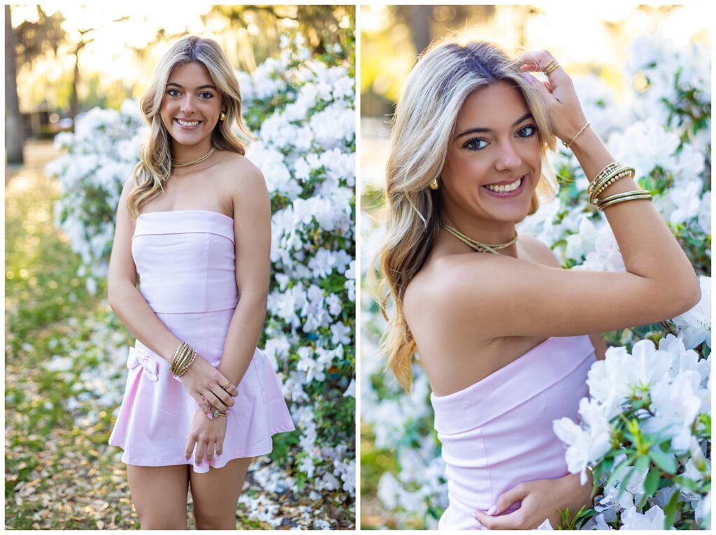 Mary’s senior session in downtown Savannah was everything you dream of when you think of spring in the South—colorful, glowing, and full of life. We met at Forsyth Park right as the flowers were in full bloom, and let me just say… Savannah showed OFF for her session.